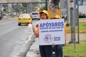 Como cada año, el personal del Arzobispado de Panamá se puso la camiseta y salió a las calles con alcancía en mano, no sin antes recibir la bendición del padre Efraín De León, Vicario de Pastoral, quien les animó a trabajar fuerte en este servicio que es por y para nuestra iglesia.