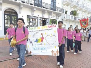Cantos jubilosos marcaron el paso de decenas de educadores, estudiantes y familias que llenaron de vida las calles del Casco Antiguo. Todos respondieron al llamado de la Federación de Educación Católica de Panamá (FECAP) y la Pastoral Educativa Arquidiocesana, con el respaldo del Ministerio de Educación, para celebrar el pasado miércoles, 13 de agosto, el Jubileo del Mundo Educativo.