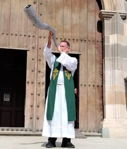 El resonar del Shofar, a cargo del padre Israel Ramos, director de la sección de catequesis, abrió paso al ingreso a la Catedral Basílica Santa María La Antigua.