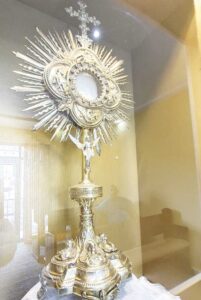La custodia, que data de 1953, no estaba en uso; fue restaurada y pulida, y conserva numerosos signos y valiosos detalles.