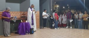 Con el propósito de hacer visible el rostro sufriente de Cristo en quienes se ven obligados a dejar su tierra, la Pastoral de Movilidad Humana realiza el viacrucis en el Hogar Luisa, albergue para migrantes y refugiados, ubicado en Parque Lefevre.